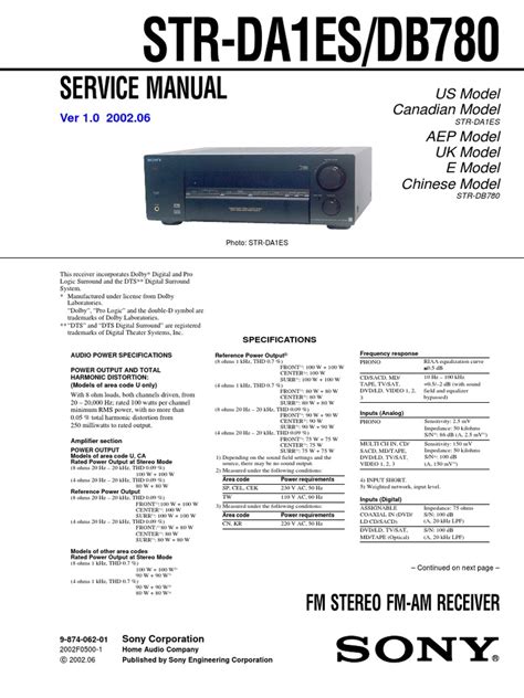 At present you are looking for an Sony Str Da1es Db780 Service Manual example that will we provide here inside some form of document formats like as PDF, Doc, Power Point, and also images that will will make it easier for you to create an Sony Str Da1es Db780 Service Manual yourself. For a clearer look, you may open a few examples below. Each of the illustrations about Sony Str Da1es Db780 Service Manual with this site, we get from many sources so you could create a better record of your own.