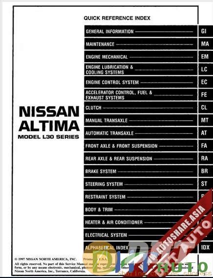 Presently you are looking with regard to an Nissan Altima 1998 Factory Service Repair Manual example that we provide here within some type of document formats many of these as PDF, Doc, Strength Point, and in addition images that will make it easier for you to create an Nissan Altima 1998 Factory Service Repair Manual yourself. For a clearer look, you can open a few examples below. All the good examples about Nissan Altima 1998 Factory Service Repair Manual about this site, we get from a number of sources so you may create a better document of your own.